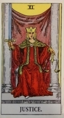 Now is the time of Justice for The Fool. He must look back over his life and take responsibility for the actions that he has made had hurt anyone including himself. What does he need to make amends for so he can be on his true path. What must he do so he can have a clean slate for his future? Shall he keep taking the easier road or take the path which is right for him?