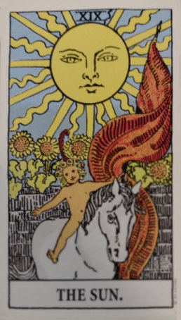 The Sun has illuminated everything and dispelled all negativity. The Fool now acts as the child riding for the new day with no challenge too overwhelming. He has all that he needs to realize his importance.