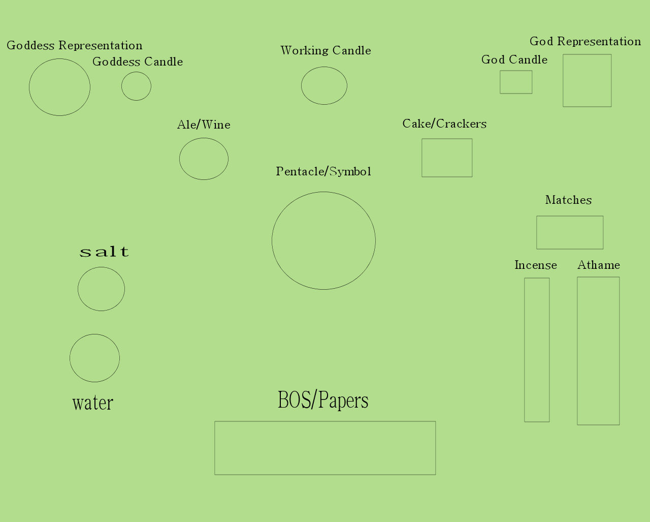 No one altar is better than another. They are usually all created in unique styles, depending on what occasion they are being used for. To the right is a basic setup but you may not want a Goddess and God association. Sometimes I set them up for just the elements, an altar of the dead or for the Esbats.